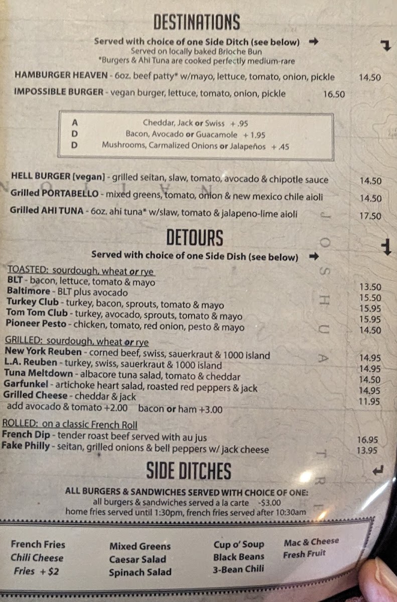 - Sandwiches and Burgers: Offers a range of handheld meals including chicken sandwiches, turkey clubs, veggie and vegan burgers, as well as specialty items like the Hell Burger.